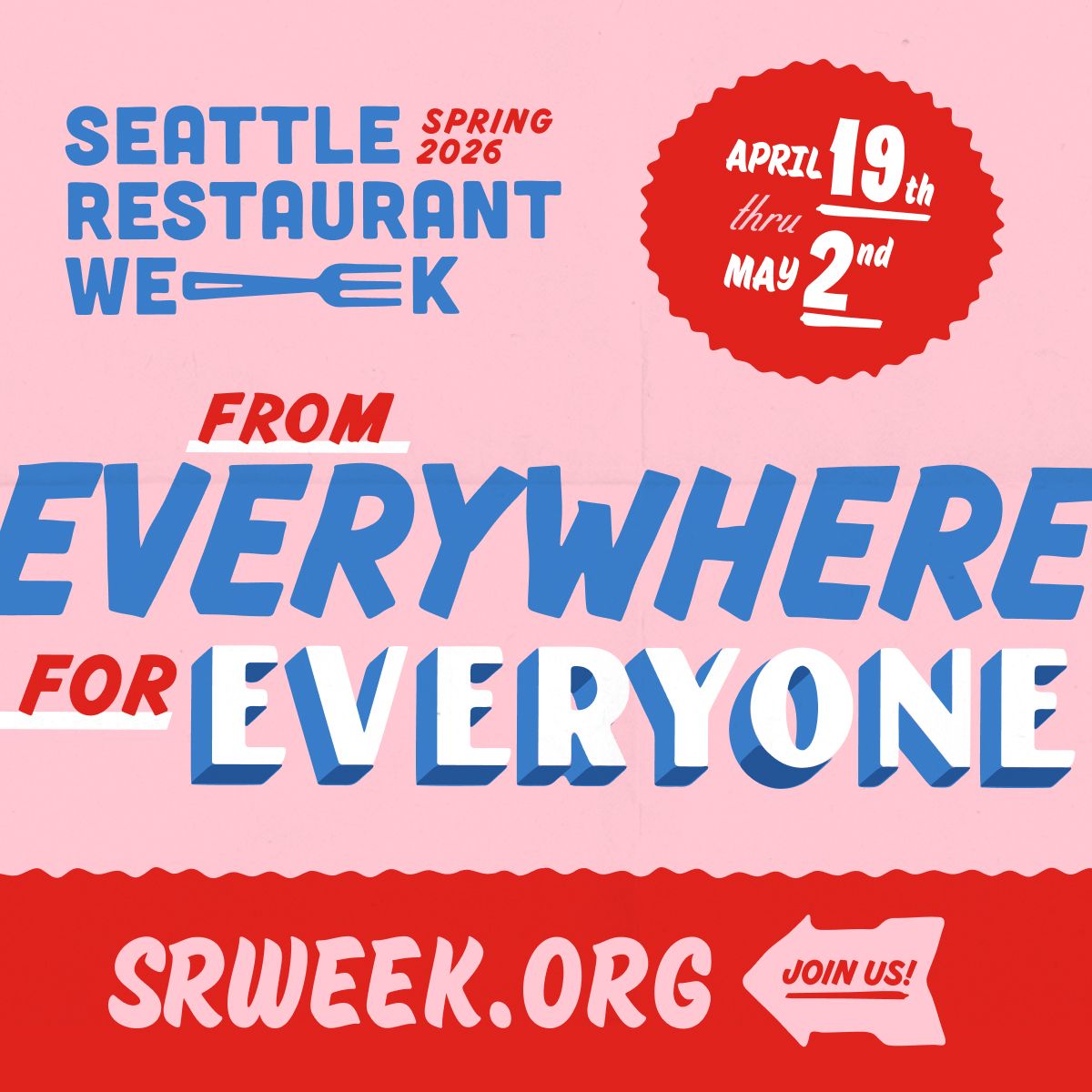 Seattle Restaurant Week returns April 19 - May 2, inviting you to celebrate good food From Everywhere, For Everyone.